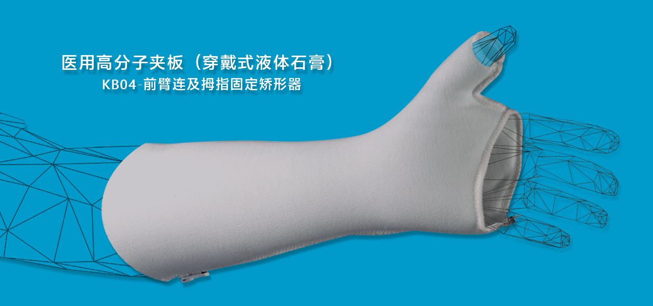 醫用高分子夾板(穿戴式液體石膏)是一種量身定做的固定矯形產品它將一種純棉彈力布袋與